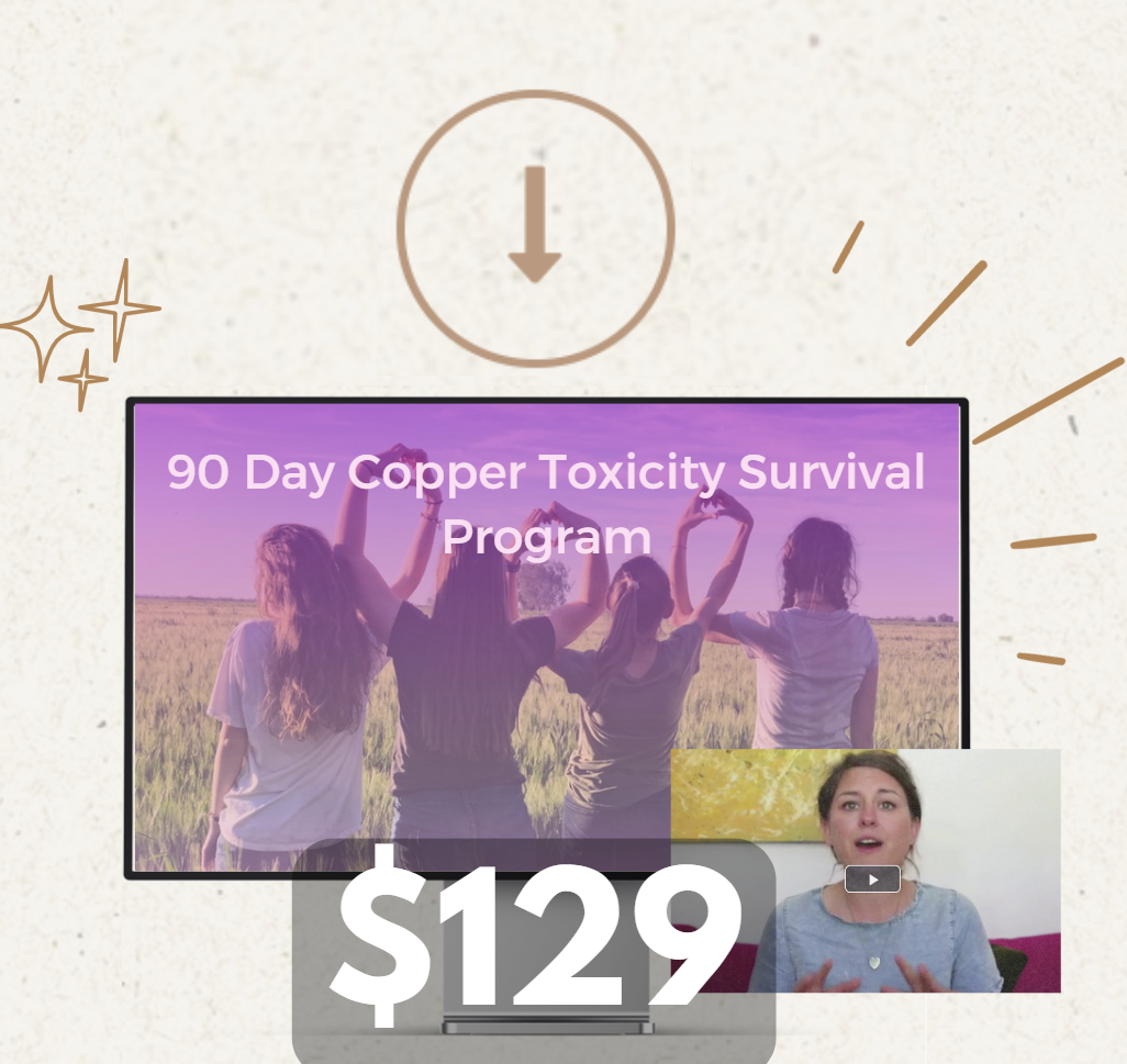 Follow someone who's literally been through the depths of copper toxicity, healed herself, and has gone on to support others in their healing. Join Kirby Amour in her 90 day Copper Toxicity Survival Program and have someone there to guide you every step of the way through your healing for the next 90 days. (Pre-recorded video program).
