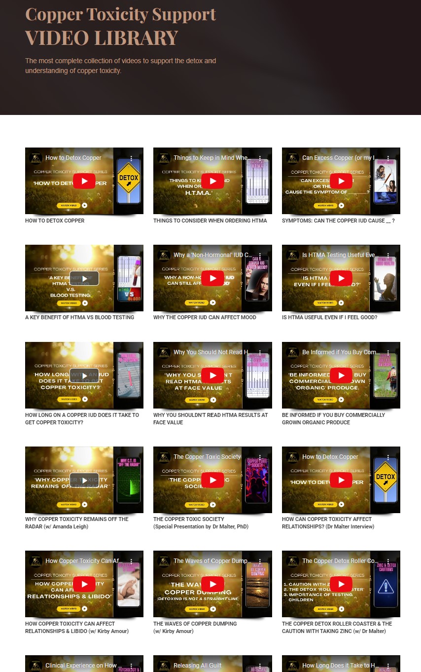 Have lifetime access to the largest online collection of copper toxicity support videos.